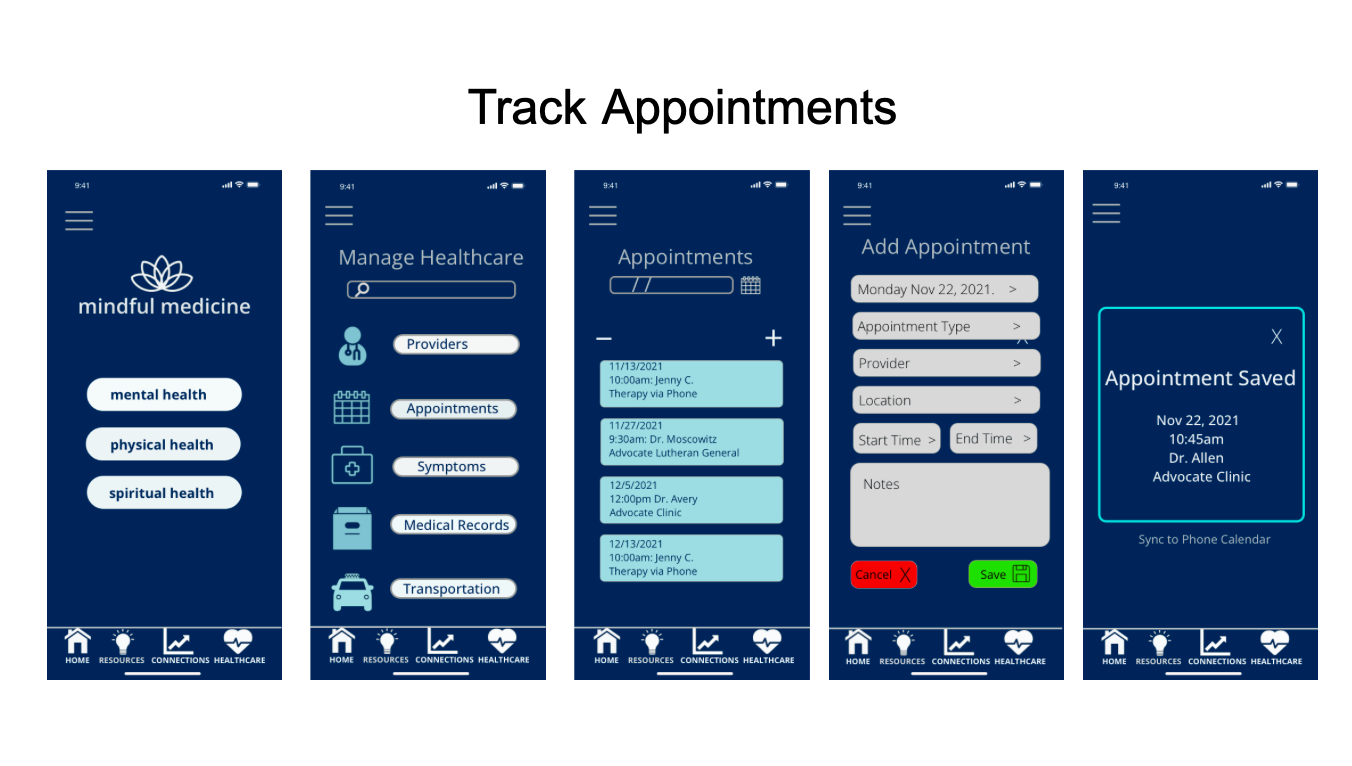 Mindful Medicine is an accessible healthcare portal with an emphasis on holistic wellness that allows users to track and manage aspects of their physical, mental, and spiritual needs all in one secure space.