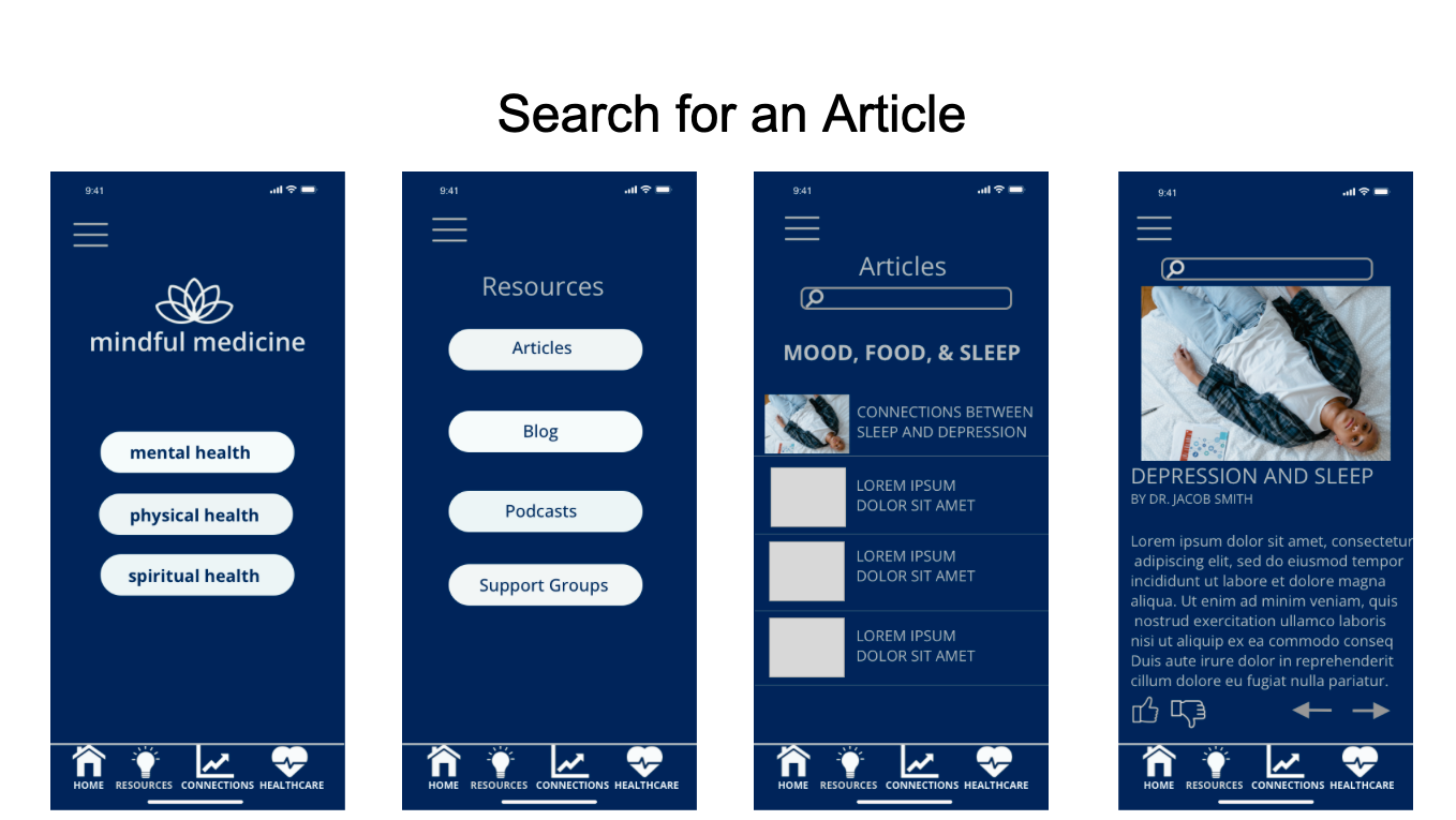 Mindful Medicine High Fidelity Wireframes Version 2